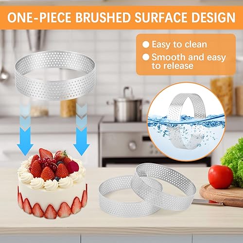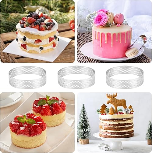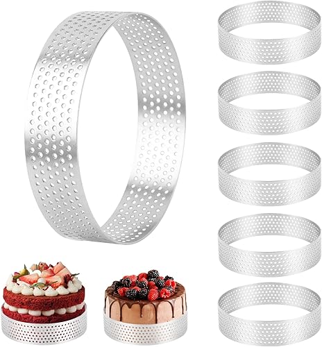 6 Pièces Cercle à Pâtisserie, Ø 8 cm Cercle à Tarte en Acier Inoxydable, Cercle a Tarte, Cercle Perforé Patisserie, Cercles à Tartelette, Moule à gâteau pour Quiches, Gâteaux, Mousse, Mini Pizzas