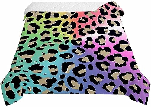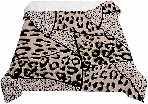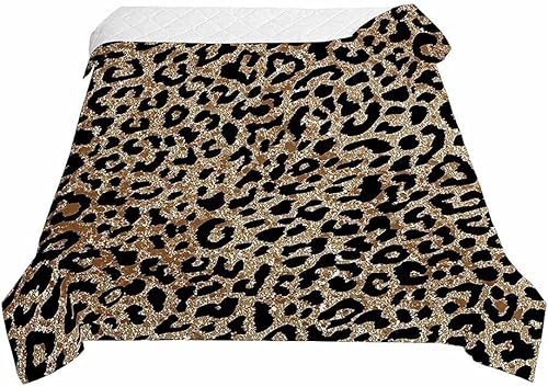 Surwin 3D Léopard Couvre Lit Matelassé pour 1/2 Personnes, Réversible Dessus de Lit Couverture de lit Doux Microfiber Jeté de Lit Couvre-lit Printemps Été (Léopard,180x220cm)