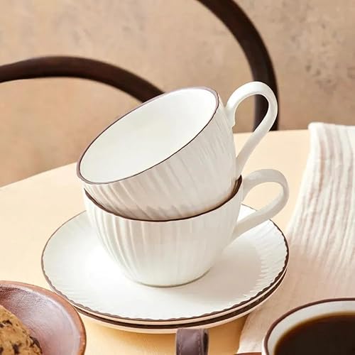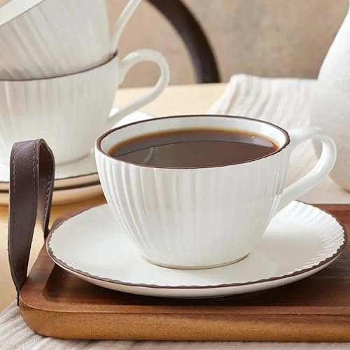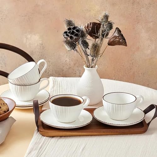 Karaca Lot de 8 tasses à thé Rhein pour 4 personnes - Vaisselle à thé élégante avec 4 tasses à thé (300 ml) et 4 soucoupes assorties - Fabriqué en porcelaine de qualité supérieure