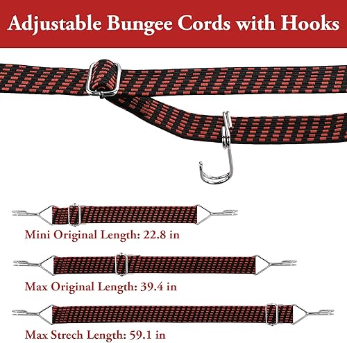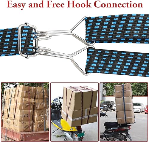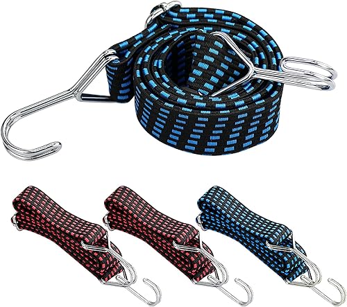 Lot de 4 sangles élastiques plates réglables avec crochets pour porte-bagages, vélo, moteur, camping (bleu, rouge, 1 m)