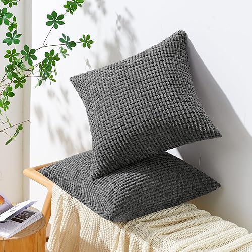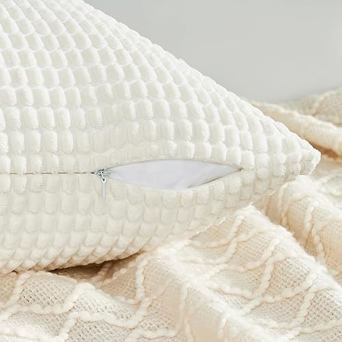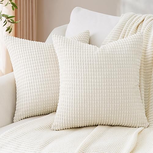 Topfinel Housse Coussin 30x30 Beige Velours Côtelé Super Doux Coussin Décoratif Canapé Salon Chambre Lot de 2