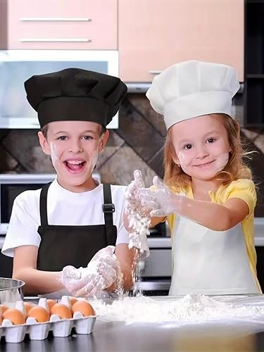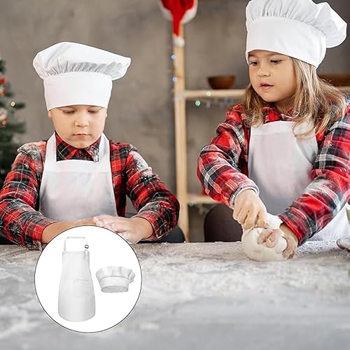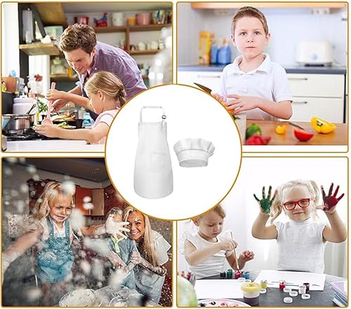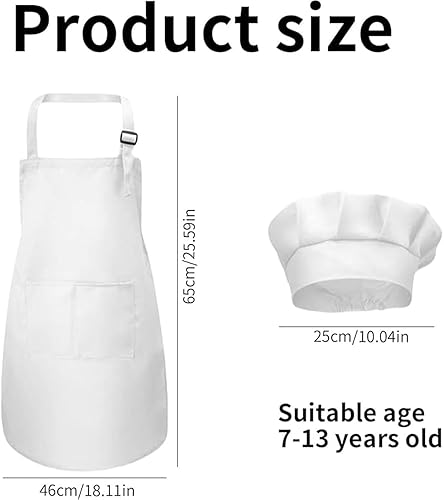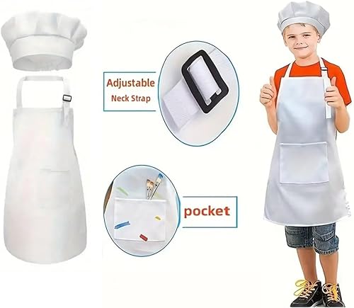 Zwenjuan Tablier Blanc,1 Set Tablier et Chapeau Chef Pour Enfants,Réglables Tabliers de,Pour Filles Garçons,Bambin Tabliers de Cuisine de Jardin,Tabliers en Coton pour Cuisson