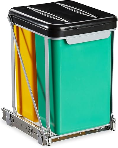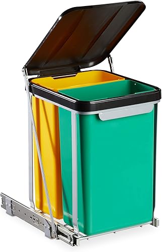 Relaxdays Poubelle sous évier coulissante, encastrable, tri sélectif, bacs 8 L, couvercle, 39,5x30x25,5 cm, noir