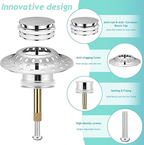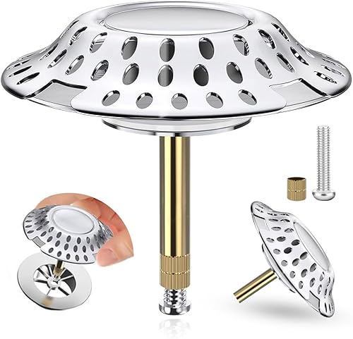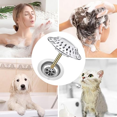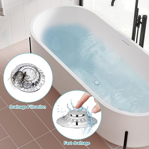 Meenewching Capuchon Universel pour Baignoire, Filtre à Cheveux, 2 en 1, Laiton Massif, Chrome, Acier Inoxydable, Modulaire, Réglable en Hauteur, 5,6 cm