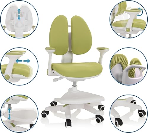 hjh OFFICE 736417 Chaise pour des Enfants Kid Wing Tissu Vert Repose-Pieds pratiquement réglable en Hauteur, pivotant