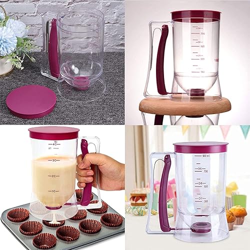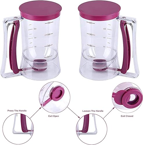 iYLin002511021217 Distributeur de Pâte à Gaufres Distributeur de Pâte à Crêpes Pâte Manuel Distributeur Tasse à Mesurer de Pâte Utilisé pour Faire des Gâteaux, Crêpes, Muffins, Gaufres, 900 ML