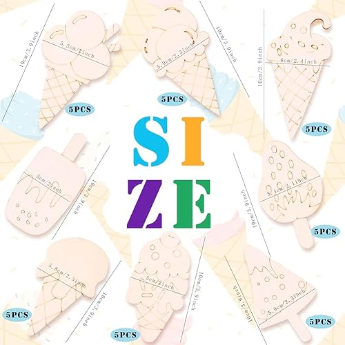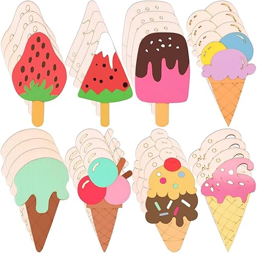 Muuoeou Lot de 32 tranches en bois brut pour crème glacée - 8 styles - Pour le bricolage, la décoration de la maison
