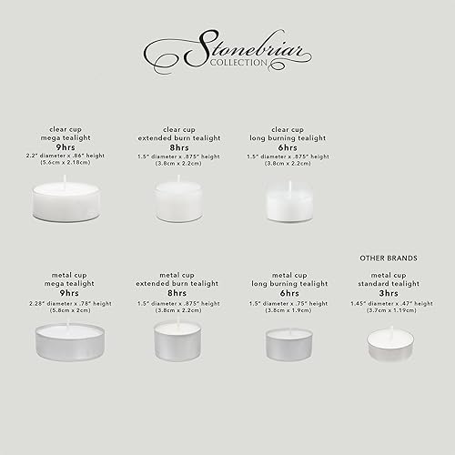 Stonebriar Dtl-100–8 Bougies à Combustion Longue – 8 Heures – Blanc – Non parfumées – Lot de 100, Blanc, 200 Pack