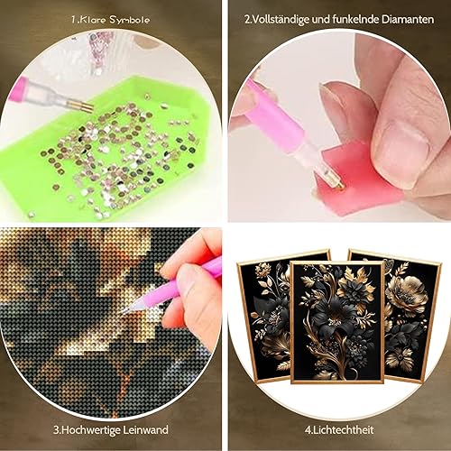 Lot de 3 fleurs de peinture diamant pour adultes, kit de peinture diamant pour adultes, peinture diamant pour bricolage, peinture diamant pour décoration de la maison, kit de peinture diamant DIY (30