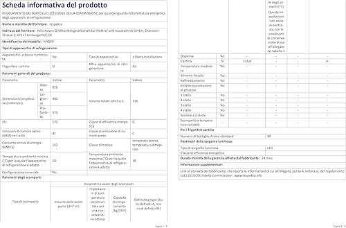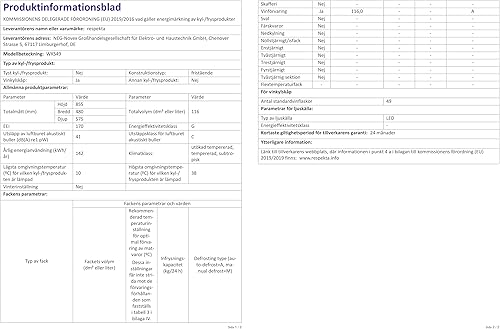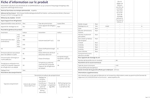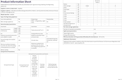 Respekta Cave à vin pose libre pour 49 bouteilles standard / 116 L de volume utile/Thermostat réglable de 5 °C à 22 °C/Touch Control/Lampe LED/Max. 41 dB/WKS 49