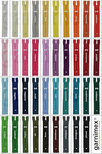 Fermetures éclair 22 cm Assortiment 39 pièces – Non divisible – 39 couleurs