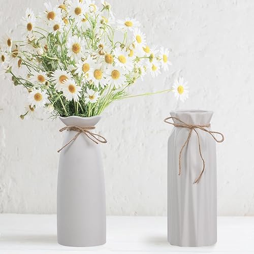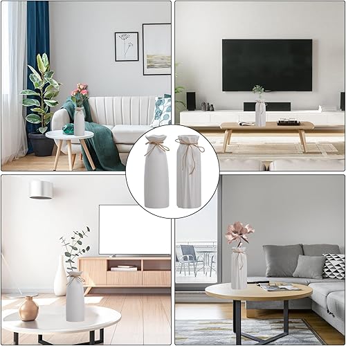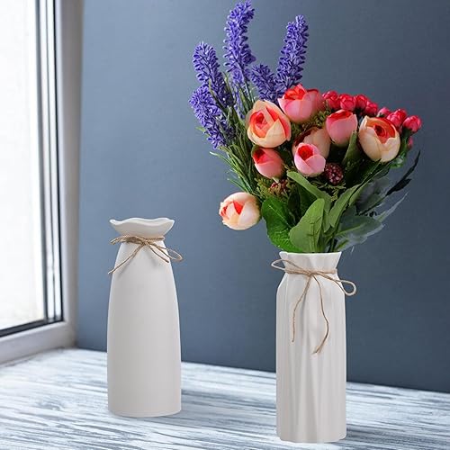 Lot de 2 Grands Vases pour Herbe de la Pampa - Blanc, Sol en Céramique, Fleurs - Moderne pour Décoration de Maison, Bureau, Table - Porcelaine
