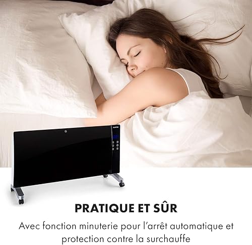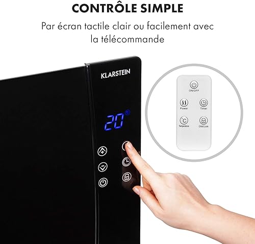 KLARSTEIN Lindholm - Radiateur convecteur, Affichage LED, Panneau tactile, Télécommande, Minuterie, 1000 ou 2000W, Thermostat 16-40° C, Sécurité enfants, Protection anti surchauffe - Blanc