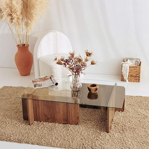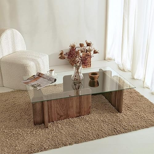Table d’Appoint Rhin Design Verre Trempé en couleur Nogal