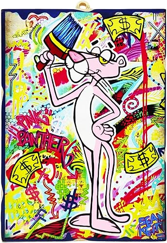 KUSTOM ART Tableau mural série Pop Art Panthère Rose impression sur bois 25 x 18 cm.