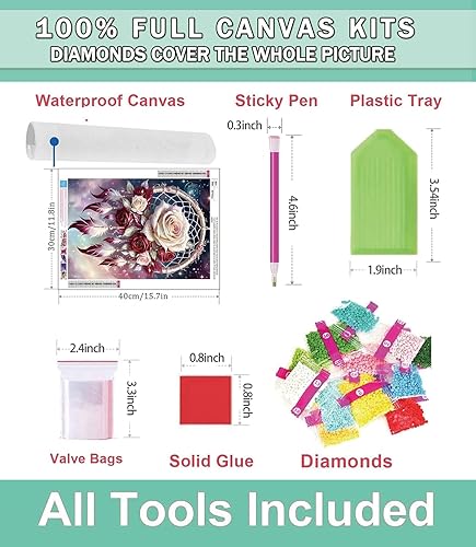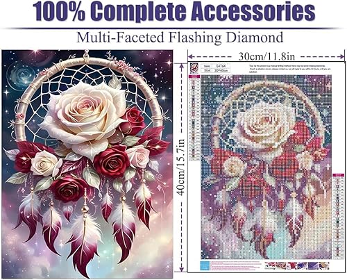 Kit de peinture diamant attrape-rêves pour adultes, attrape-rêves 5D et fleurs de roses pour débutants, kit d'art diamant à faire soi-même pour décoration d'intérieur, 30,5 x 40,6 cm