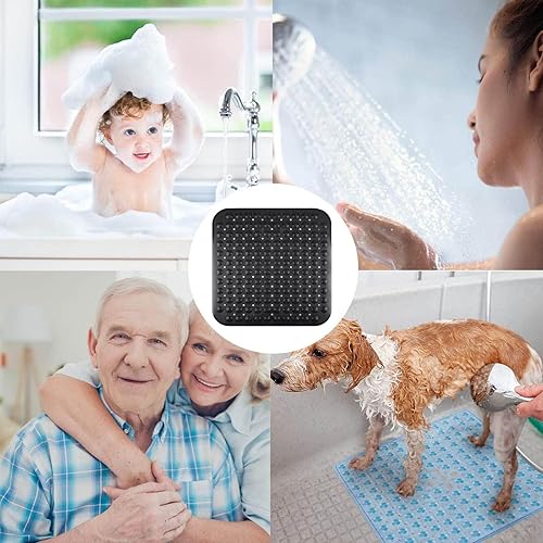 Tapis de Douche, 48 x 48 cm Tapis de Douche Carré en PVC, Tapis de Douche Carré Lavable en Machine, Tapis de antidérapant pour l'intérieur, pour Douche et Sauna(Vert Foncé)