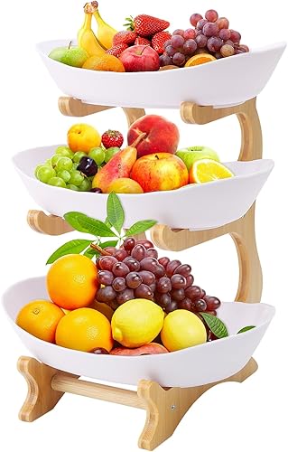 Sonhomay Corbeille à fruits à 3 niveaux avec support en bois pour divertir les fruits, les légumes, les apéritifs, les desserts, les noix, les gâteaux, les bonbons