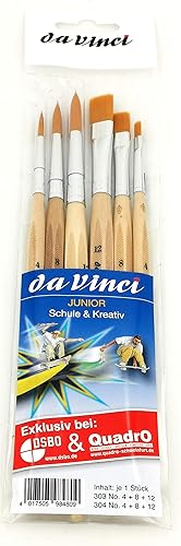 da Vinci junior Lot de 6 pinceaux d'artiste de qualité supérieure pour peinture acrylique, huile, aquarelle et aquarelle