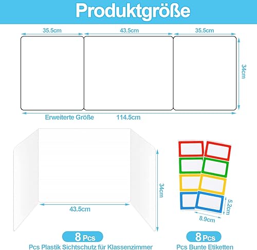 8 Pièces Séparateur de Bureau, Cloison Bureau, Panneau de Séparation de Bureau Pliable, Separateur Bureau, Séparateur de Confidentialité de Table pour L'école, Le Bureau, La Bibliothèque (8 Pièces)