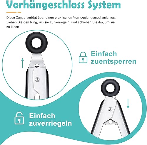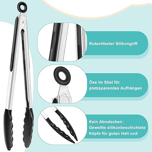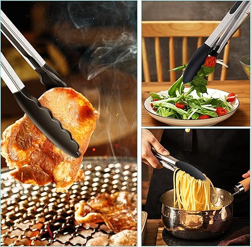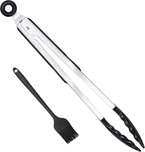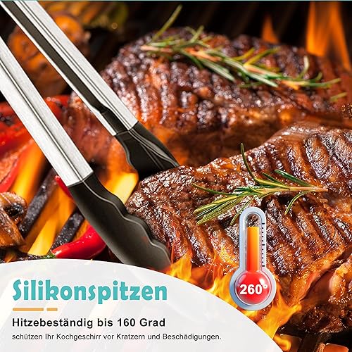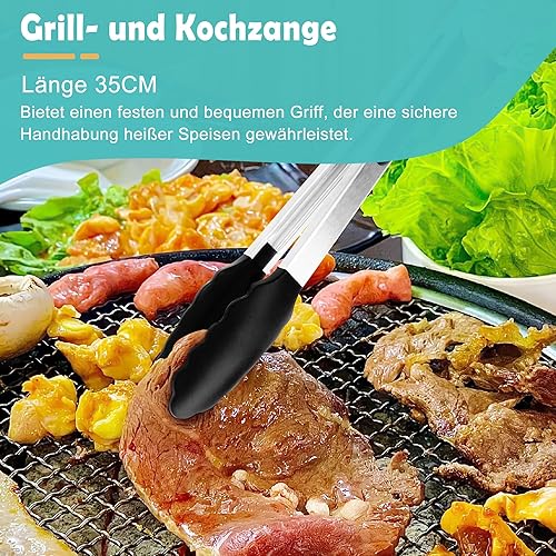 35cm Pince Cuisine Professionnel, Pince Barbecue en Acier Inoxydable et Silicone Alimentaire, Brosse incluse, Pince de Cuisine Résistant à la Chaleur