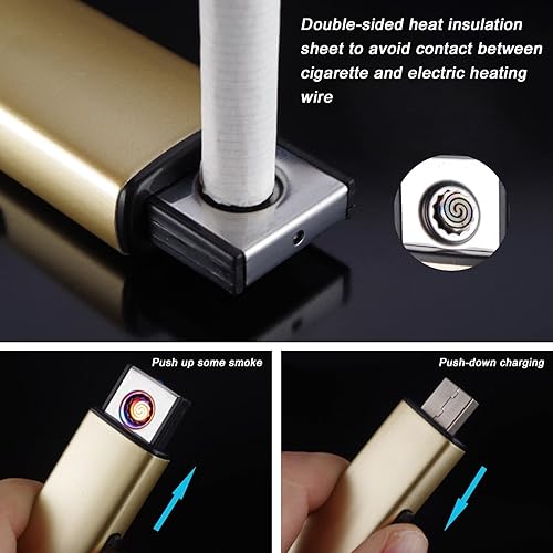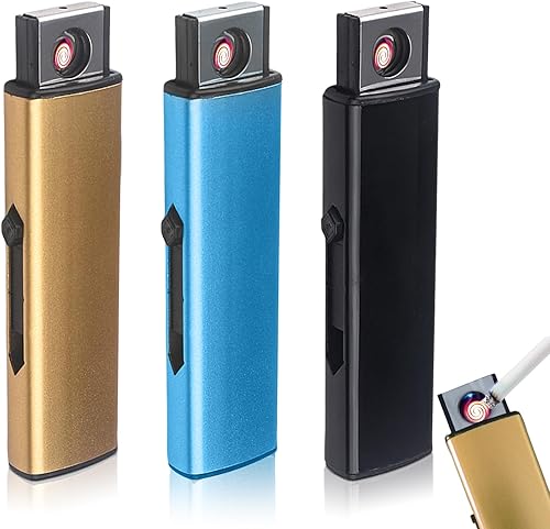 Lot de 3 briquets électroniques tempête électriques avec port USB, allumage double face, sans flamme, coupe-vent, rechargeables, sans gaz (noir + argent + bleu)