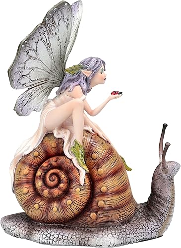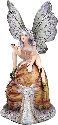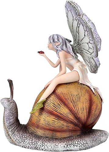Figuren Shop GmbH Figurine d'elfe Althira sur escargot - Figurine décorative avec coccinelle - Fée magique avec ailes - 19,5 cm