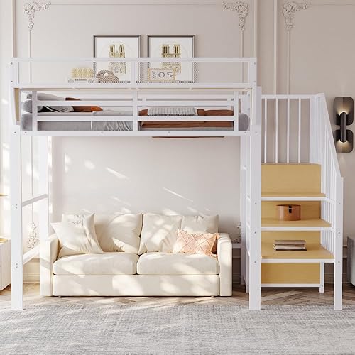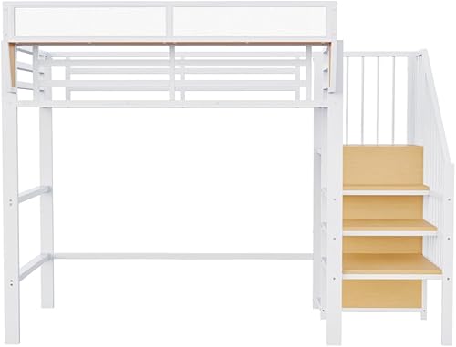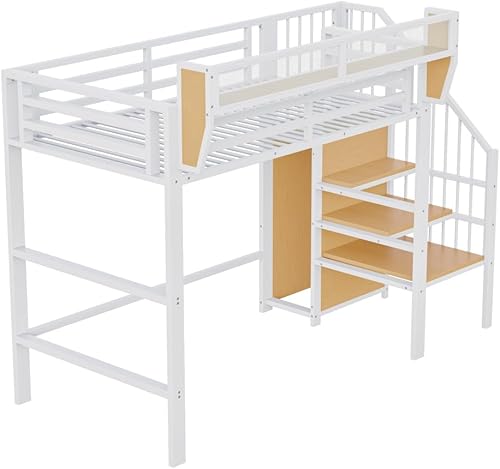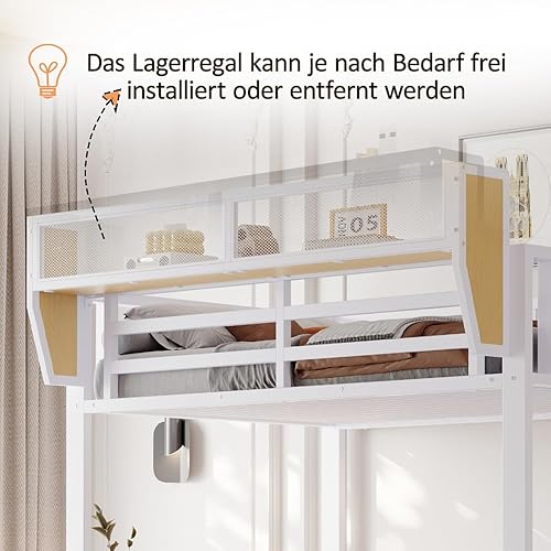 Zubaliya Lit superposé Enfant 90x200,lit Mezzanine 1 Place 90x200,lit Enfant avec Barriere,avec Responsable de sécurité et Compartiment de Rangement Flexible,métal