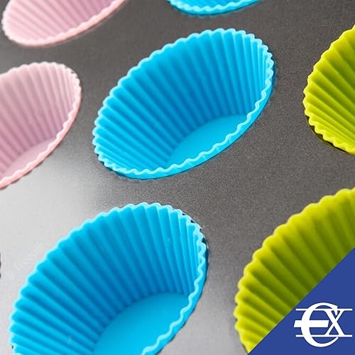 Kit de Pâtisserie | Ensemble avec Moules à Muffin en Silicone et à Œufs Cocotte en Acier au Carbone | Moules à Cupcake anti-adhésifs | Moules en Silicone et Acier | EUOXANTY Accessoires de Pâtisserie