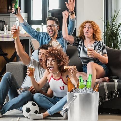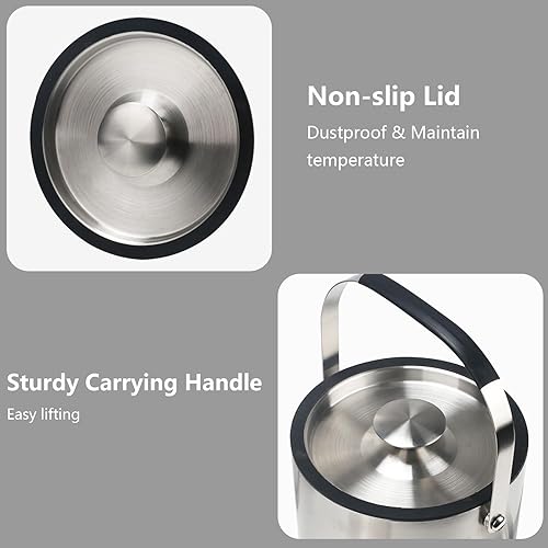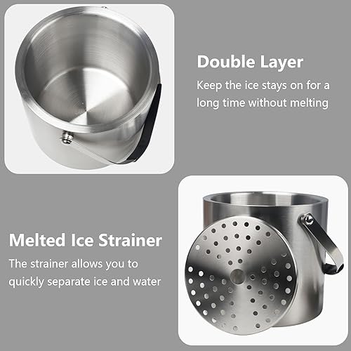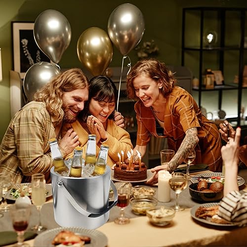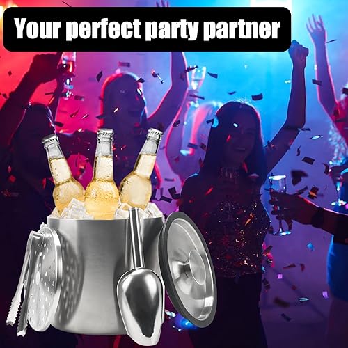 Minnhua 4L Seau a Glacon Seau a Champagne Sceaux à Glace Et Rafraîchisseur Double Paroi Seau à Glaçons Isotherme En Acier Inoxydable Avec Couvercle Pince Pelle et Passoire pour Champagne vin Bière