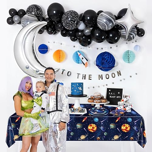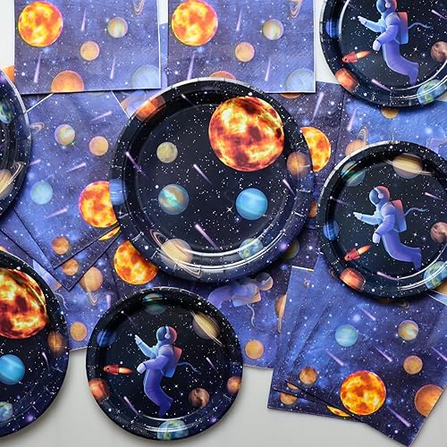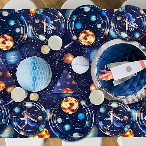 QUERICKY Décorations pour une fête dans l'espace pour 20 invités, comprenant des assiettes en papier, des serviettes, une nappe pour une fête d'anniversaire d'enfants sur le thème du système solaire