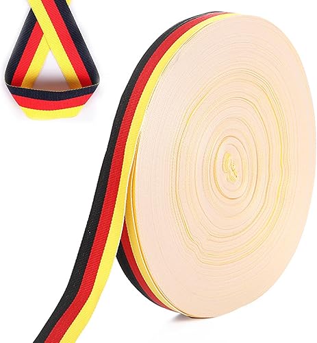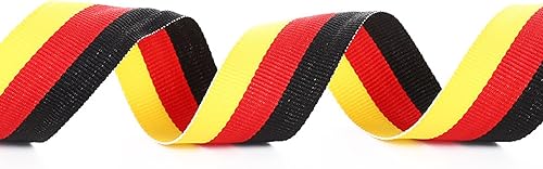 FSWWSF Bobine de Ruban Tricolore 50m*10mm Ruban Nylon Bobine Décorative Tricolore Noir Rouge et Jaune en Couleurs pour Emballage Bannière Artisanat et Fête Nationale