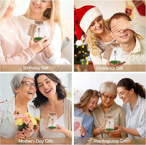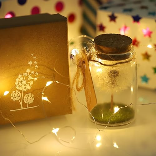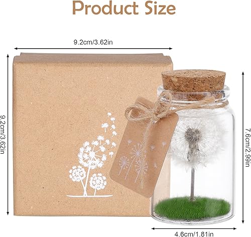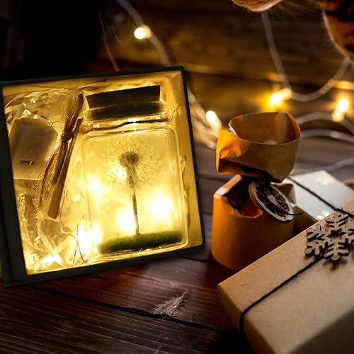 JIZZU Véritable Pissenlit en Verre LED, Véritable Pissenlit Dans un Verre avec Boîte Cadeau– Fait à la Main– Cadeau D'anniversaire, de Mariage, de Fête des Mères, Cadeau Noel