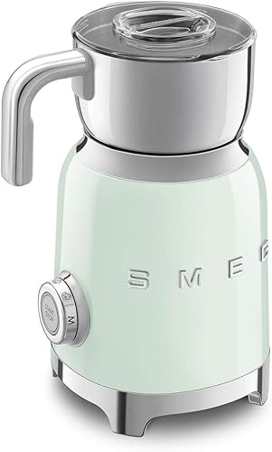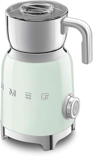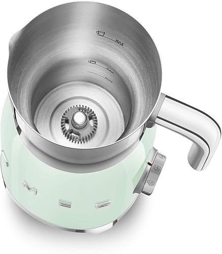 Smeg, Mousseur à Lait Multifonction MFF11PGEU, avec Système à Induction, 6 Programmes Prédéfinis, une Fonction Manuelle, Carafe Amovible 600 ml, Bouchon Doseur, Range Cordon Intégré, 500 W, Vert d'Eau