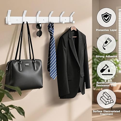 Galerie SV Porte Manteau Mural, 2 Pièces Porte Manteau 6 Crochets, Patere Murale, Porte Manteau Mural Sans Perçage, Crochet Porte Manteau Mural Pour Cuisine, Salle de Bain et Chambre