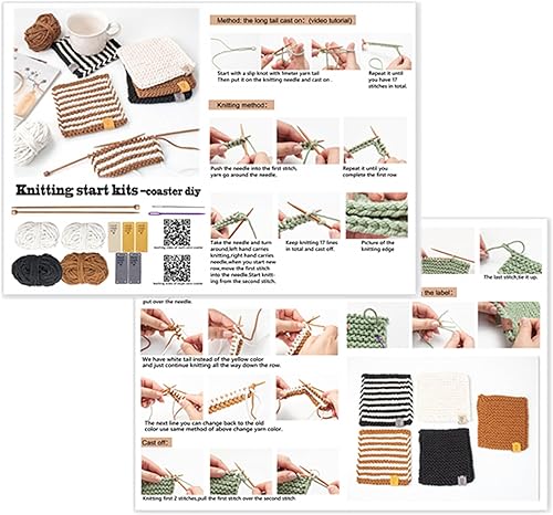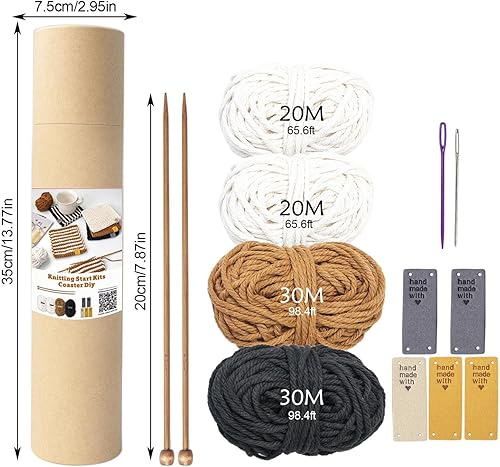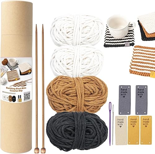 YNPQTDS Kit de démarrage à tricoter, sous-verres, kit de tricot, pour débutants, adultes, avec aiguilles à tricoter, sac, accessoires de tricot, idée cadeau, fournitures de bricolage et kits
