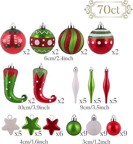 Victor's Workshop 70pcs Boules de Noël, 3-8cm Délicieux Elf Incassable Boule de Noël Ornements Décoration pour Décor d'arbre de Noël