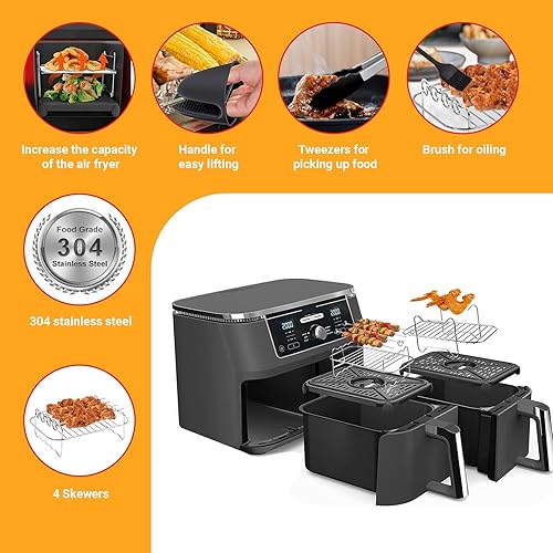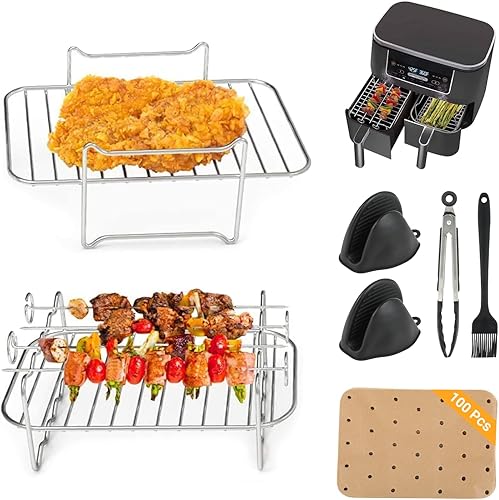 7 PCS Grille Air Fryer Ninja Accessoires Air Fryer Accessoires pour Friteuse Accessoire pour Air Fryer Moule Air Fryer Acier Inoxydable 304 avec Ninja AF300EU AF400EU