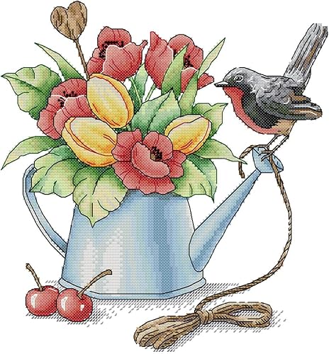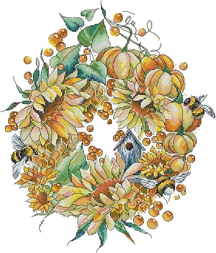 Awesocrafts Point de Croix Kit Complet Estampé, Couronne de conte de fées Estampillé 11CT 3 brins 18.1×20.1 pouces Broderie Point de Croix Imprimé