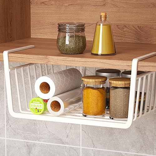 Organisateur de panier d'étagère, panier sous armoire - Panier en fil d'organisateur de panier en maille - Support de pot d'assaisonnement peu encombrant, support de rangement pour étagères