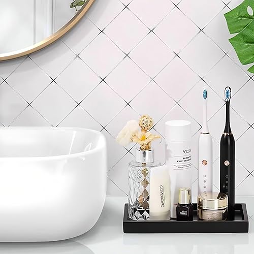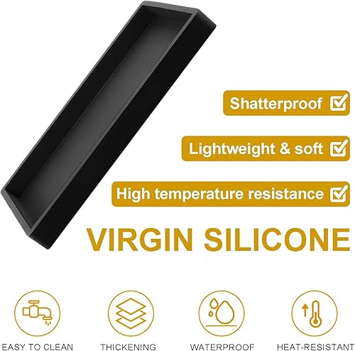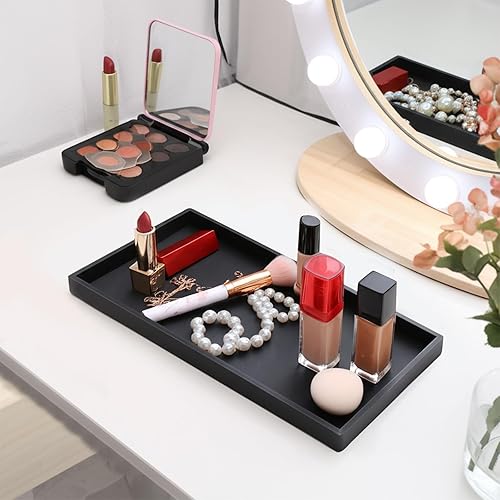 Zyiphor 2 Pièces Plateau Salle de Bain en Silicone Noir Plateau de Rangement Rectangulaire Plateau Noir Rectangulaire Plateau de Vanité en Silicone pour Tissus, Savon