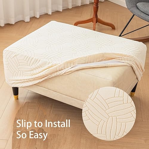 Meigeh Housse de Pouf Rectangulaire Housse Ottoman Housse de Tabouret Housse pour Repose-Pied Extensible Bleu S+
