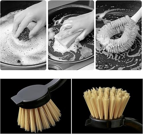 Brosse de Lavage de Vaisselle Brosse de Cuisine à séchage Rapide Épurateur à Long Manche Brosse à Vaisselle puissante Outil de Nettoyage Noir Épurateur de Vaisselle de Cuisine Brosse de Lavage de Bol