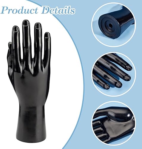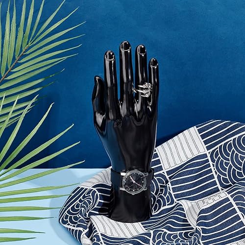 PH PandaHall Présentoir de main de mannequin masculin, Présentoir d'anneau de modèle de main Présentoir à gants en plastique noir Support à bracelets pour la maison Magasin, 9.2x5.9x25.5 cm