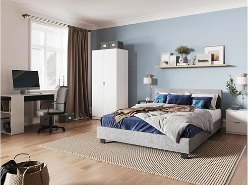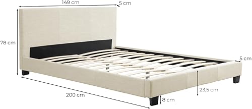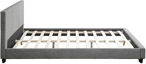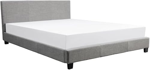 LOUNGITUDE - Yoko - Cadre de lit - Sommier à Lattes Inclus - Tête de lit Assortie - en Tissu - Gris Clair - 140x190