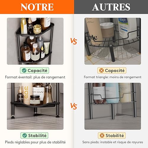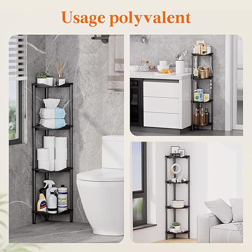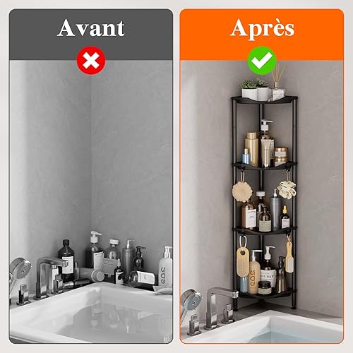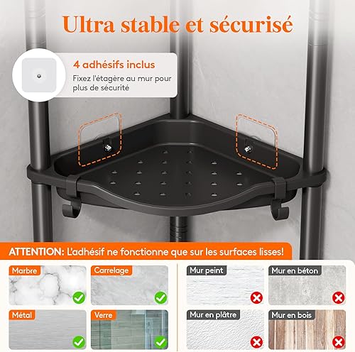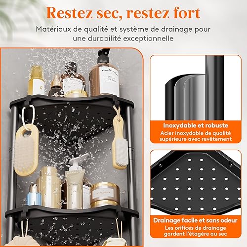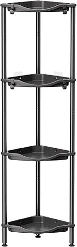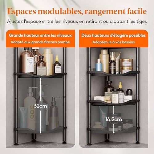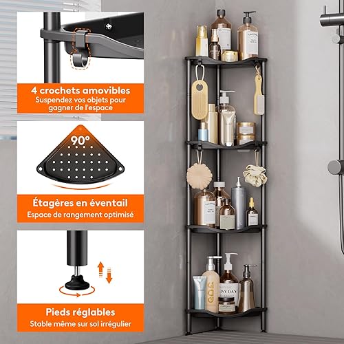 Lifewit Etagere Douche sans Percage 4 Niveaux, Rangement Angle Salle de Bain en Plastique, Porte Savon, Meuble Salle de Bain pour Shampoing, Gel Douche, Produits de Soins de la Peau, Noir