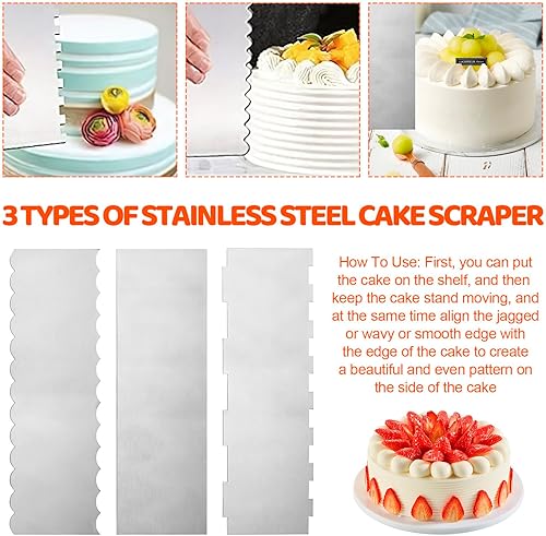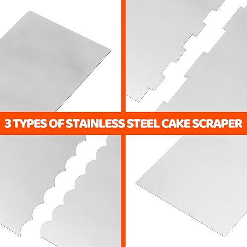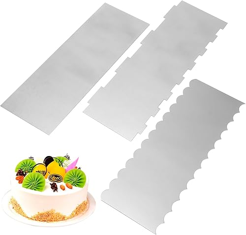 Lot de 3 spatules à gâteau en acier inoxydable - Pour crème au beurre, gâteau lisse et grattoir - 2 en 1 - Pour décoration de gâteau, cuisine