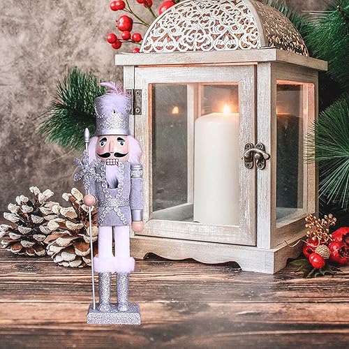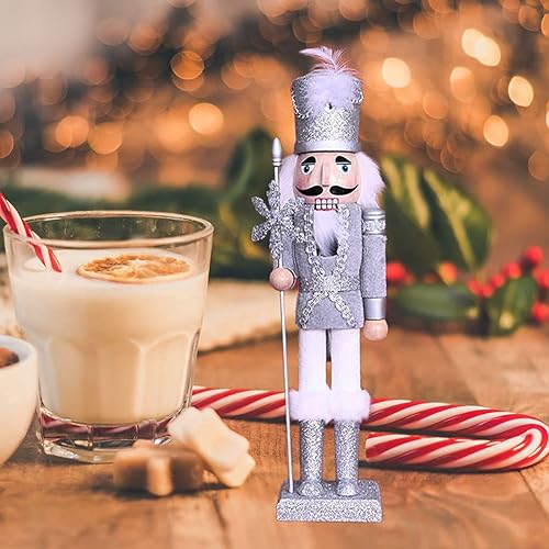 Sharplace Casse-Noisette en Bois Décoration de Noël King Casse-Noisette Figurine pour Maison, 38cm - Argent