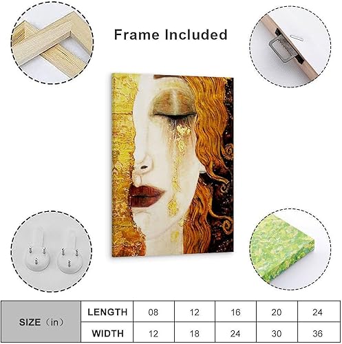 HBEOOP Gustav Klimt Peinture célèbre (larmes dorées) Impression sur toile Peinture murale Art Décoration d'intérieur moderne Idée cadeau 20 x 30 cm