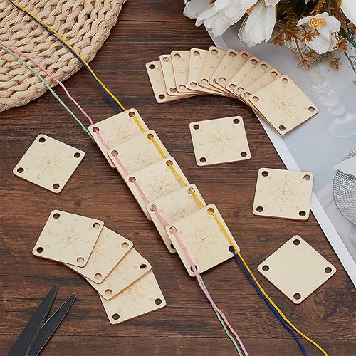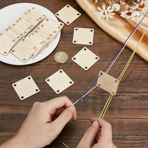 FINGERINSPIRE 24Pcs Cartes de Tissage de Tablette en Bois 4 Trous 39mm Cartes de Tissage Carrées Blanchies Couleur Amande Planche à Tricoter en Bois Outil de Tissage Fait Main pour Métier à Tricoter